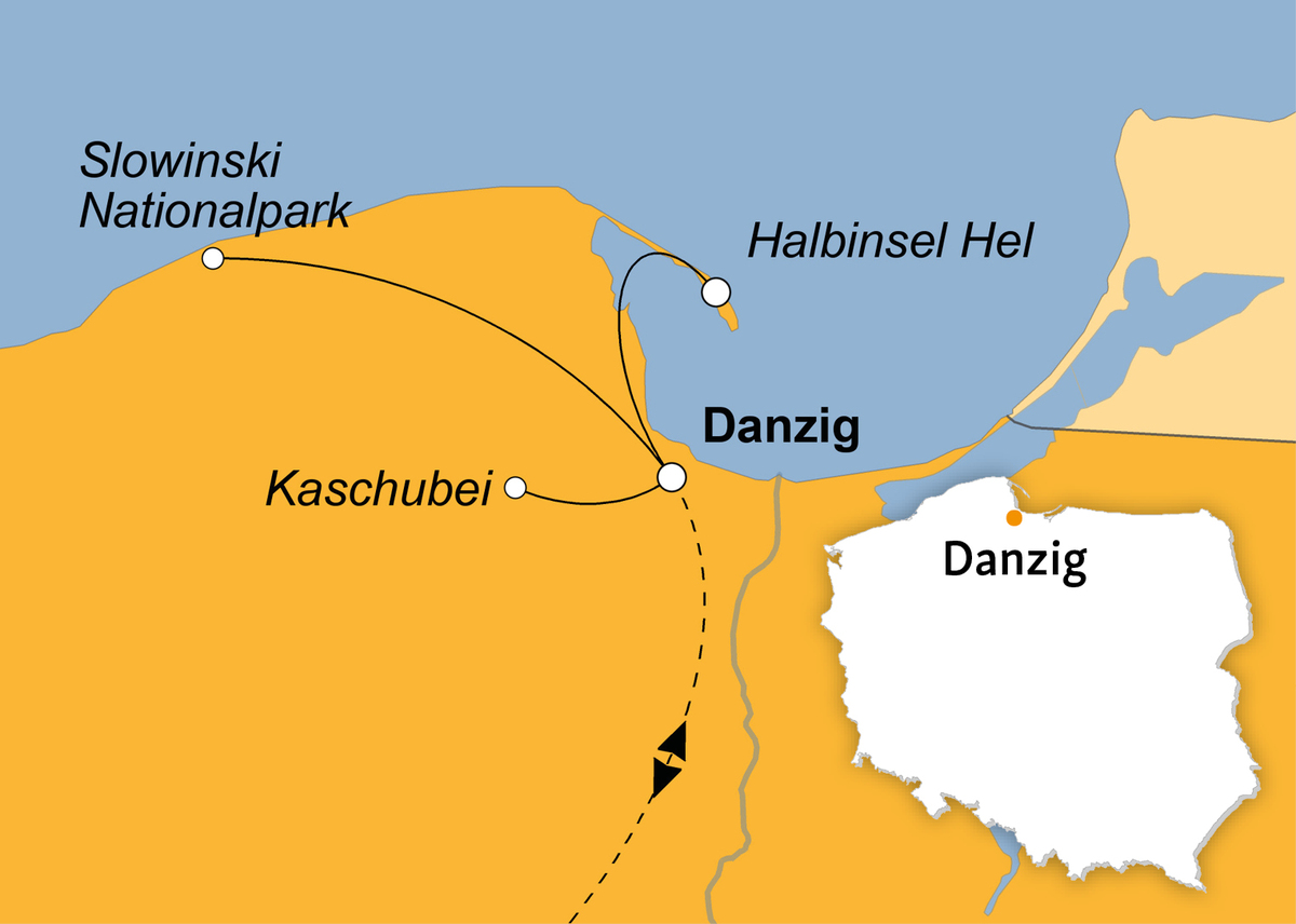 Genießen Sie einen entspannten Tag in Danzig und gehen Sie auf Entdeckungstour. Oder Sie fahren mit dem Schiff auf die Halbinsel Hel (zubuchbar). Die 34 km lange Landzunge überzeugt mit feinen Sandstränden, diversen Museen und gemütlichen Kneipen, die Sie ganz nach Lust und Laune erkunden können. Für Tierliebhaber bietet sich außerdem ein Besuch (Eintrititt nicht inkl.) im Fokarium in Hel, der Robben Station der Universität Danzig, an.