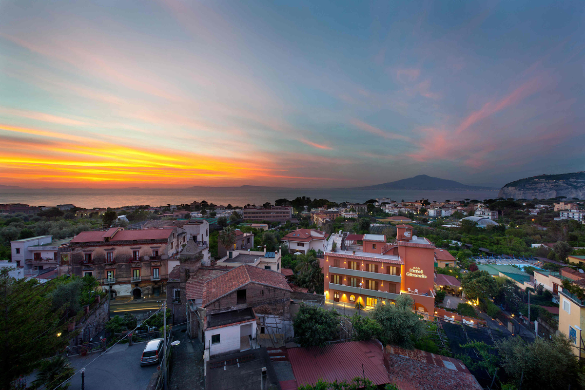 Lage & Aussattung: Am ruhigen Stadtrand von Sorrent, nur wenige Minuten vom historischen Zentrum entfernt, erwartet Sie das charmante Hotel Girasole – ein liebevoll geführtes Haus, das schon viele Jahre familiär mit viel Herz und Gastfreundschaft betrieben wird. Eingebettet in einen duftenden Orangenhain, findet man hier eine Oase vor den Toren des beliebten und weltbekannten Ortes. Der gepflegte Außenpool (wetterabhängig), umgeben von Blumen und Pflanzen, bietet eine entspannte Alternative zu den trubeligen Leben der Stadt. Eine Bar und eine Dachterrasse mit Panoramablick auf den Golf von Neapel und den Vesuv runden das Angebot ab.