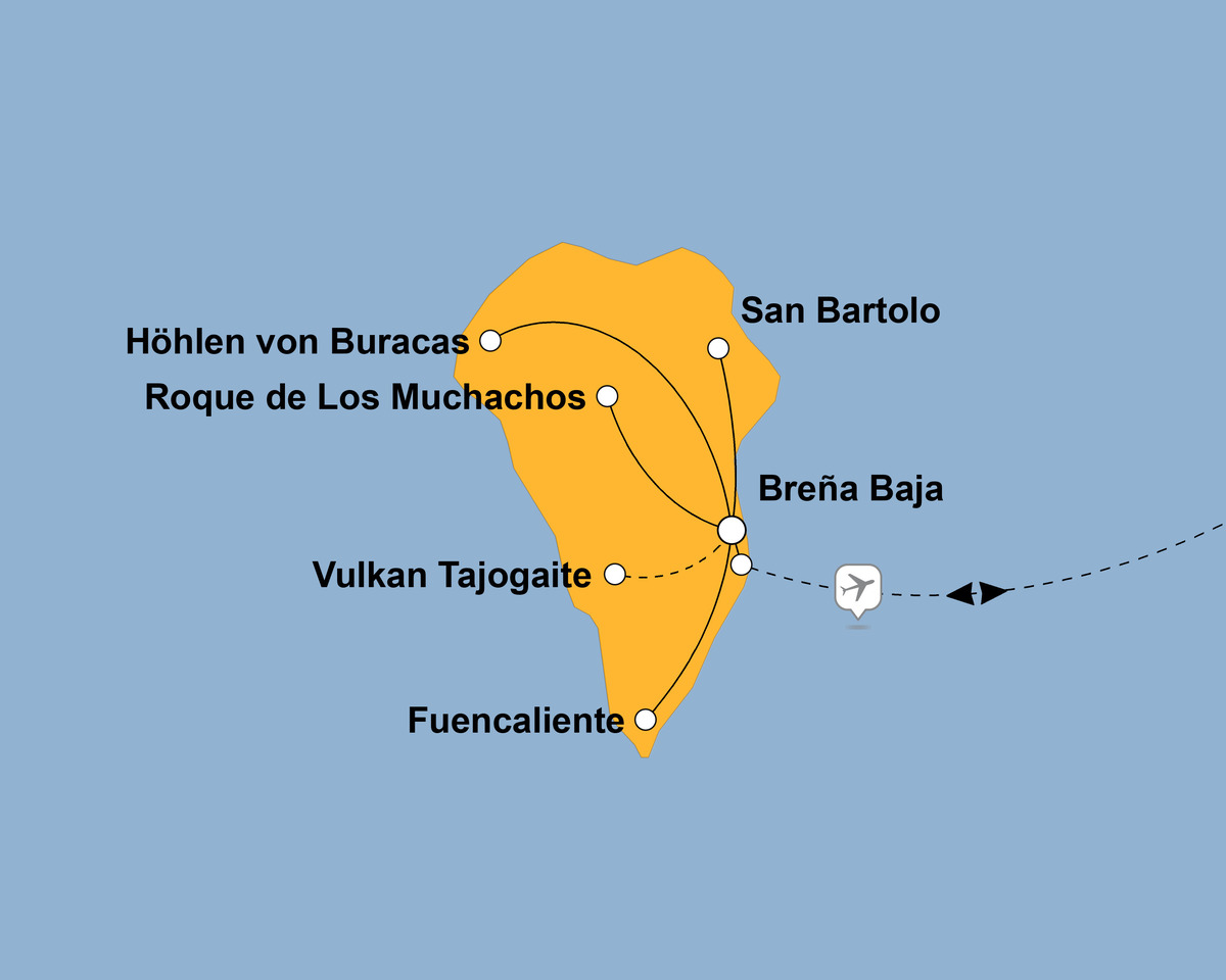 - Flug mit renommierter Fluggesellschaft nach La Palma und zurück in der Economy Class (Umsteigeverbindung, Direktflug ab/an Frankfurt)