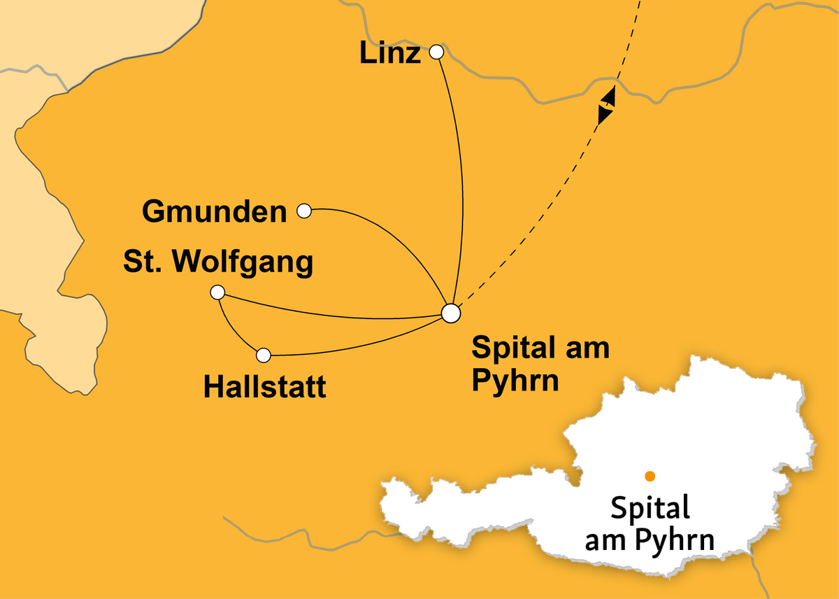- Ausflüge: Linz, Gmunden, Hallstatt und Wolfgangsee