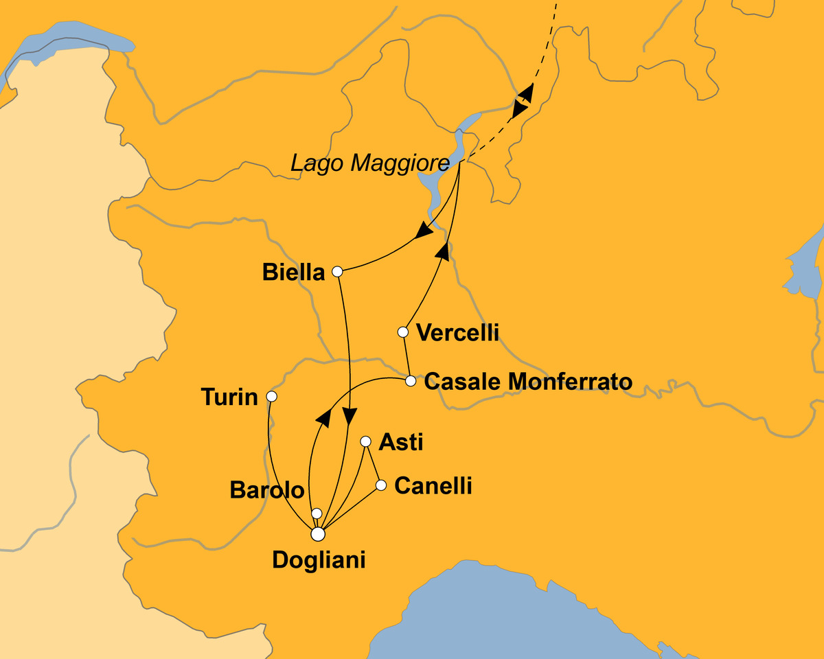- Stadtführungen: Biella, Asti, Turin, Casale Monferrato und Vercelli mit örtlicher Reiseleitung