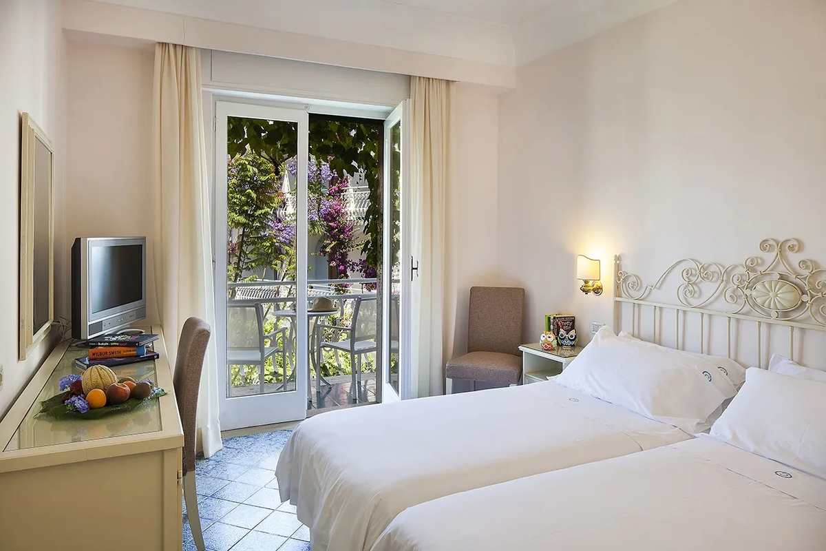 Die 238 Zimmer verteilen sich auf das weitläufige Gelände mit Hauptgebäude und mediterranen Villen. Sie verfügen über ein Badezimmer mit Dusche oder Badewanne, Fön, Telefon, WLAN, TV, Safe, Minibar und Klimaanlage. Alle Zimmer bieten entweder einen Balkon, eine Terrasse oder einen kleinen Gartenbereich.